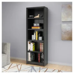 59″ Quadra Tall Bookshelf Faux Woodgrain Finish White – Corliving