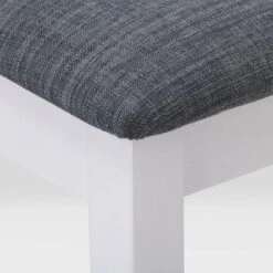 This classic white dining set fits comfortably in any space. It features a neutral two-tone white and gray finish, solid wood table top with clean lines and sturdy legs. The chairs combine comfortable padded seats with a traditional high back for support . Comfortably seating 6 this is the perfect table for any eating nook or dining room. Set includes 1 table and 6 chairs.