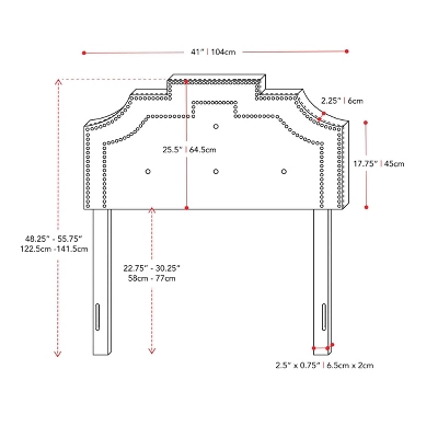 A classic crown silhouette with a splash of glam. Featuring a dual nail head trim outline and soft button tuft detail, this design is the definition of trend-setting chic. Constructed of a solid wood frame, this foam padded headboard is adjustable to suit the height of your bed and to your liking, while the low-profile supporting legs hide discreetly behind your mattress to complete the look of any bedroom.