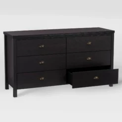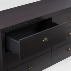 Classic lines with rustic details, the Boston six-drawer wide dresser is the perfect place to tuck away your belongings. A welcomed addition to any aesthetic, it showcases a clean-lined frame in a classic finish. Providing ample space for your belongings and wardrobe, the six drawers run smoothly on metal glides, and each one features a gunmetal cup pull handle. Add the matching nightstand or the tall five drawer dresser from this collection to complete your bedroom set.