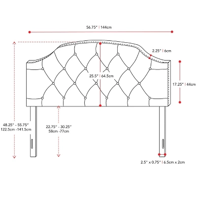 Complete your bedroom with this beautiful, foam padded upholstered headboard. A diamond button tufted design with soft lines and a smooth arched silhouette that will be sure to impress. Beautifully upholstered in a soft fabric, this versatile, low-profile headboard is equipped with easy-to-adjust legs to accommodate your bed and frame.