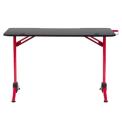 This Conqueror gaming desk is specifically designed for all your gaming gear, so you can focus on hitting that all-time high score! A built-in headphone hook and drink holder leaves more space for your monitors and keyboard to give an uninterrupted gaming experience. The curved edge desktop, low profile contrasting legs, and leveling feet add to the look and functionality of this gaming desk. Add in one of our gaming chairs and you will be ready to take on any level in full comfort!