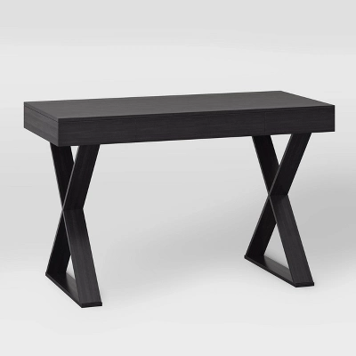 Give your office an update with this farmhouse-inspired X frame, dark stained wood desk. The X-shaped legs allow for plenty of legroom under the desk so you can sit comfortably. More than stylish, this piece features a drawer with enough room to stow away supplies, important papers, or other office essentials. It’s clean lines and rich neutral stain allows it to be not only used as a desk but a great option for an entryway table.