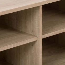 Take your living room to the next level with this stylish modern TV stand. Comprised of two cupboards, and open shelves for a sleek yet classic appearance. This entertainment center creates additional storage space in your home for media, electronics, accessories, books, or decor. The beautiful rich wood grain finish with silver pillar legs looks great in any aesthetic. This bench fits most TVs up to 55″ and is the perfect combo of classic colors and finishes.