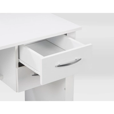 - Two smooth gliding drawers with finished interiors for storage