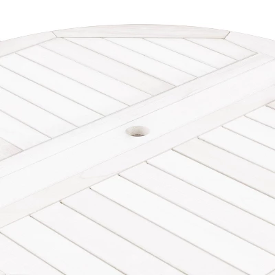 Looking to add a storage-friendly option to your alfresco space? This dining table is a perfect place to sit down for a meal, use it as an impromptu outdoor office table or the home of an epic game night. Crafted from hardwood, this design is perfect for your outdoor space. Planked details on the tabletop add a touch of laid-back appeal, while the attached drop leaves let you seat those last-minute guests in a flash.