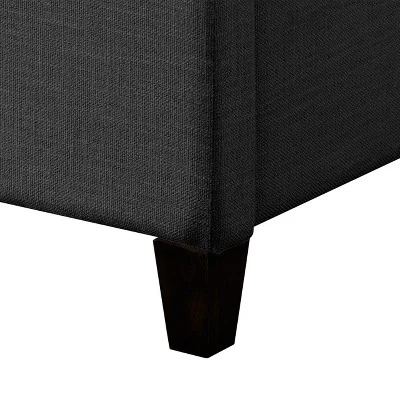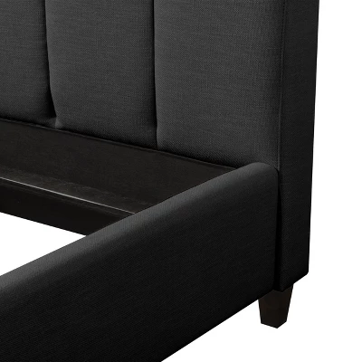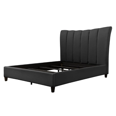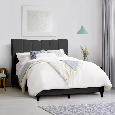Complete the look with this uniquely designed bed with a tufted statement headboard. Soft vertical seams become the centerpiece, while the concave arched headboard softens the look, adding elegance to any bedroom. A solid upholstered frame is beautifully upholstered in a soft fabric. Sturdy center support legs and metal side rails allow you to rest comfortably.