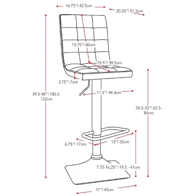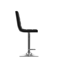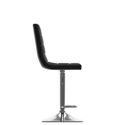 Add some contemporary style with these adjustable swivel barstools from CorLiving. Each barstool features a sturdy chrome plated base and a built in footrest. Padded square tufting and matching black stitching add a touch of class to these sporty looking seats. An upgraded gas lift ensures smooth adjustment of height and added durability. With padded bonded leather seats and 360 degree swivel these barstools are the ultimate in comfort and versatility.