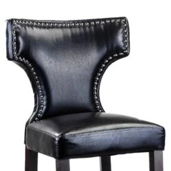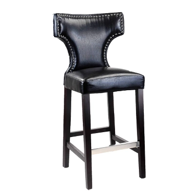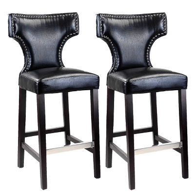 These PU bar height bar stools are an excellent addition to your dining area. Both stylish and sturdy, they were designed to withstand the use of a busy kitchen with a wipe-able surface and strong wooden legs. Add a curved high backrest accented with nailhead trim and you have a beautifully stylish yet functional bar stool.
